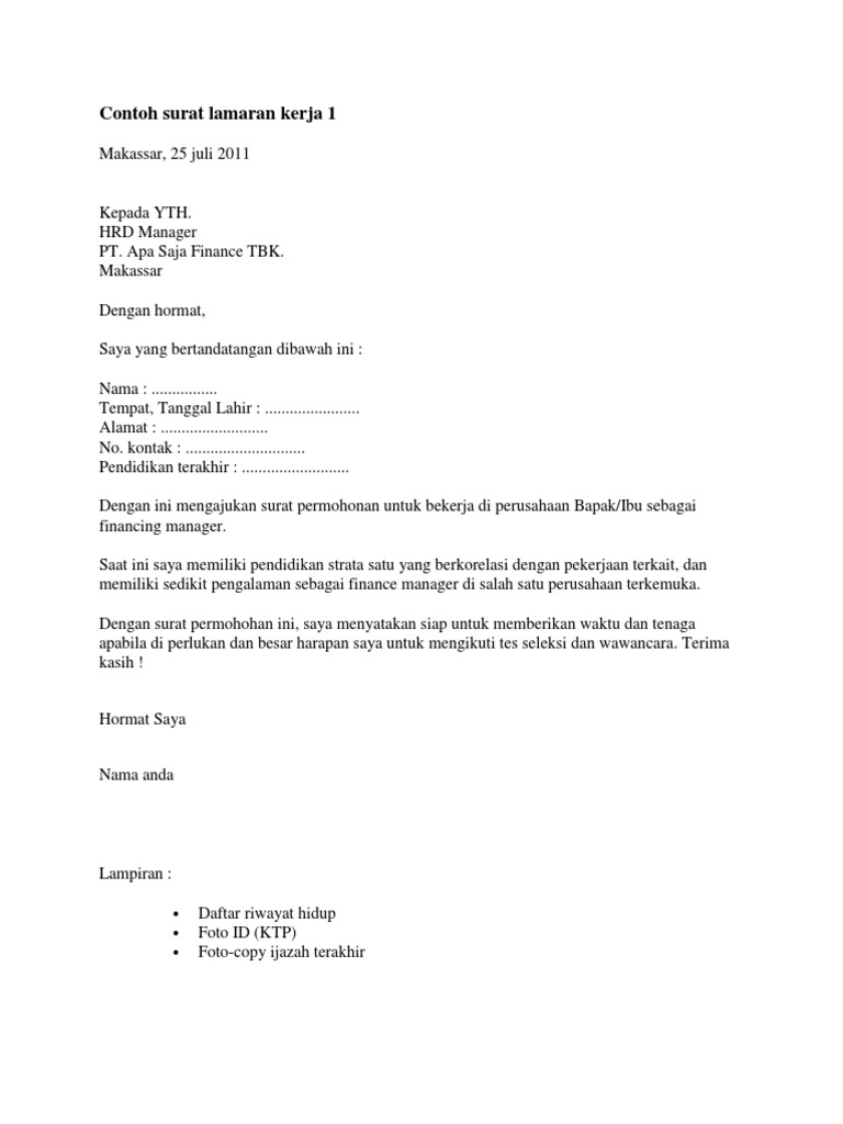 Contoh Surat Lamaran Kerja Yang Benar Cara Membuatnya